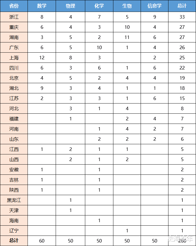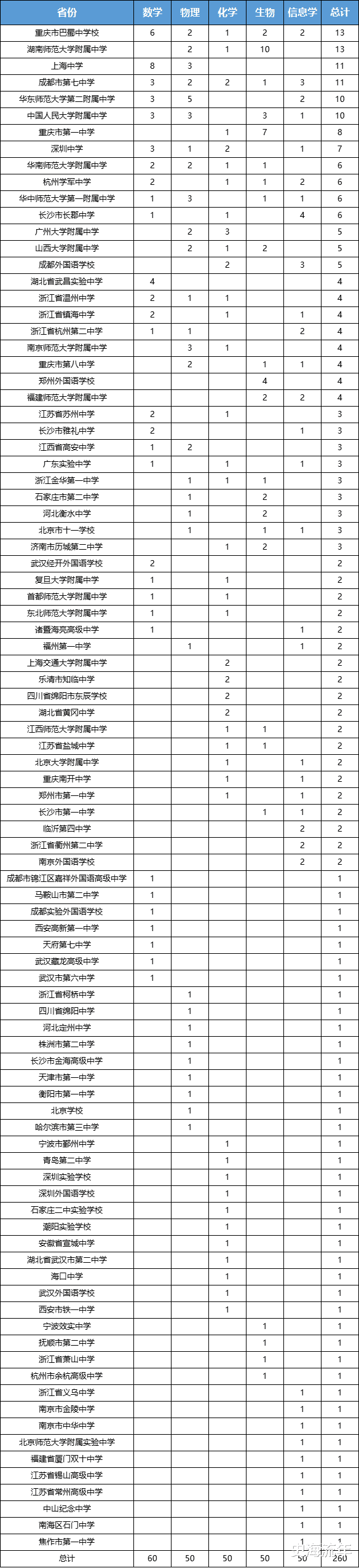 重庆同样以27人跻身第一梯队,巴蜀中学的多学科突破成为重要支撑。第二梯队包括广东、上海等省份,广东以26人入选且化学学科全国领先的表现站稳脚跟,上海则在数学、物理传统优势学科中持续发力。